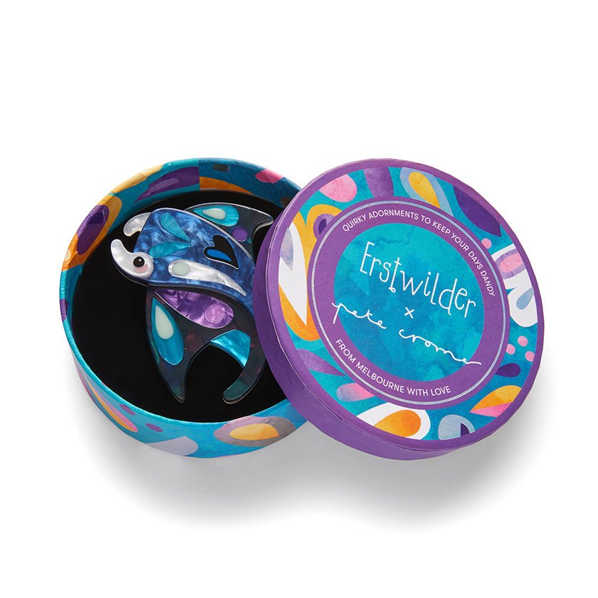 Please be aware that resin is akin to ceramic and glass and therefore may be damaged if dropped or knocked. Due to the use of high quality silver-plating in our brooch clasps, tarnishing and oxidisation can occur, producing black and gold discolouration. As with all silver products, you can simply restore it using a silver cloth. Keep your Erstwilder companion neatly tucked away in this box when not being worn, avoid contact with perfumes, lotions, water and excessive sunlight and you’ll have a trusted friend for years to come.