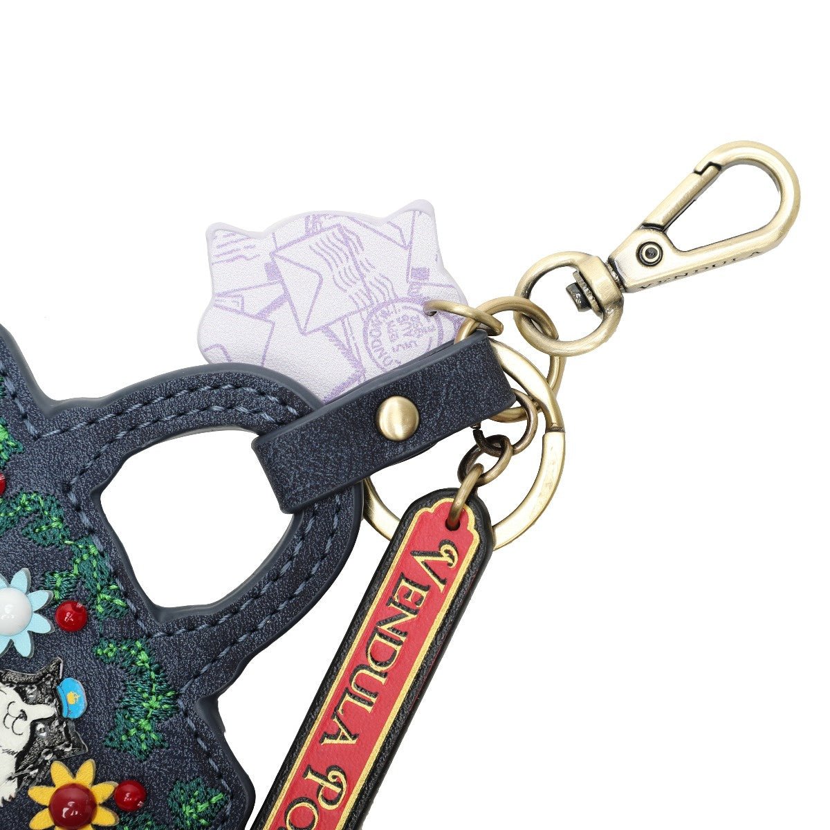 There is no such thing as having too many key charms! The Old Post Office - Navy Edition - Key Charm is a lovely little accessory that will match your Old Post Office bag and wallet. It comes with a clasp and a ring, so you can attach it to your handbag or to your keys. In the shape of a handbag, this quirky vegan leather charm is adorned with printed and embossed details, and it stars our friendly Postie Cat, busy delivering letters and surrounded by foliage and colourful flowers. How could you resist such a cutie?