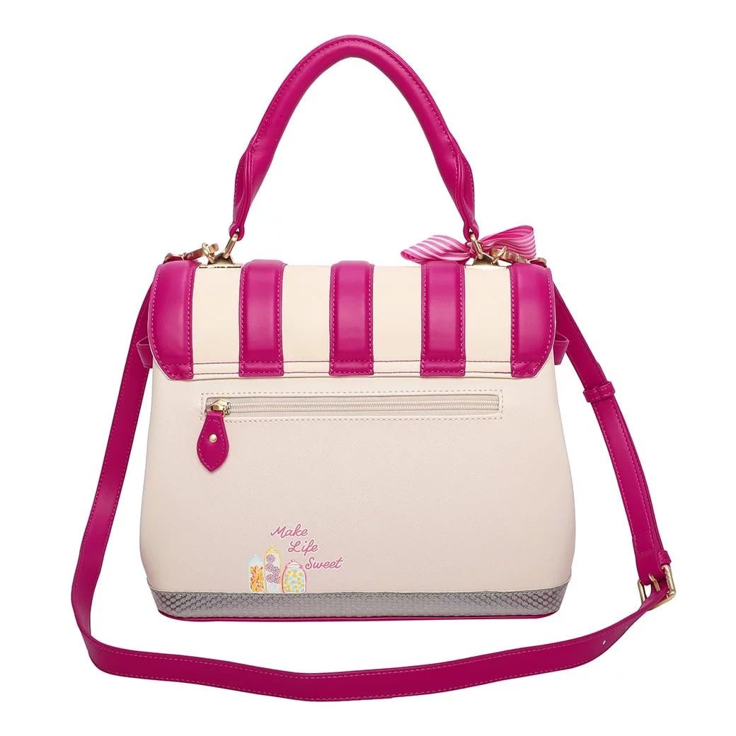 Take a trip down memory lane with the Old Sweet Shop Grace Bag! This traditional sweet shop-inspired bag, made of vegan leather, is ideal for a Vendulette with a sweet tooth: boiled sweets, gummy bears, lollies, what’s not to love? It is a remarkable bag which comes with a comfortable handle and a detachable strap so you can carry it as a handbag or over the shoulder. It is quite lightweight and contains a spacious main compartment and a few pockets, so you can store all of your essentials and few treats of your own choice. We bet you can’t wait to visit the newest shop on Vendula Street, and our feline shopkeeper is looking forward to welcoming you and have you try out the latest confections!