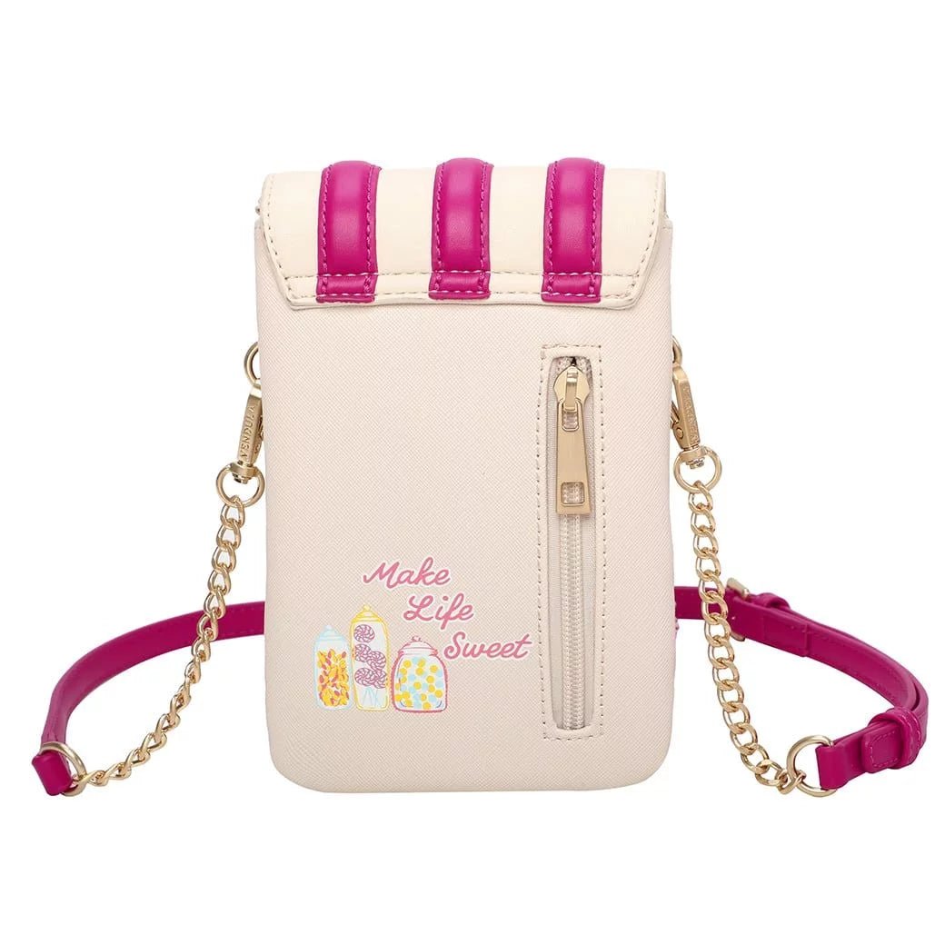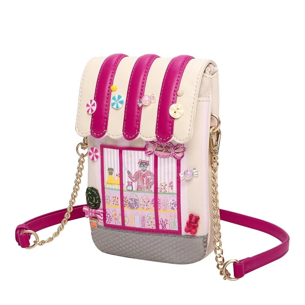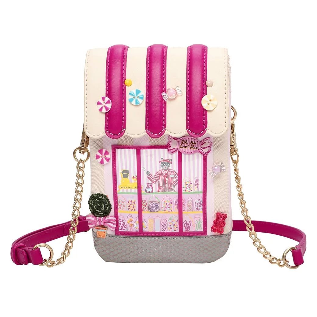 Get ready to be sweet-talked into giving away your fashion secrets! The Old Sweet Shop Phone Pouch is a wondrous accessory. This bag is made of vegan leather and is adorned with colourful details that will make your eyes sparkle. It can be used daily, day and night, and it is easy to carry either over the shoulder or as a clutch by attaching or detaching the strap, which is also adjustable for extra comfort. It comes with three pockets for your phone and essentials, as well as a zipped pocket at the back, which can be used to store cash or a few cards. If you are looking for a cute and practical everyday bag to impress your friends, this pouch is definitely the one you need!