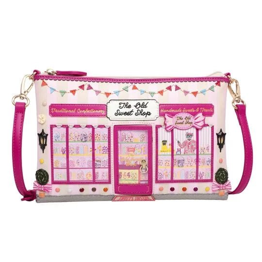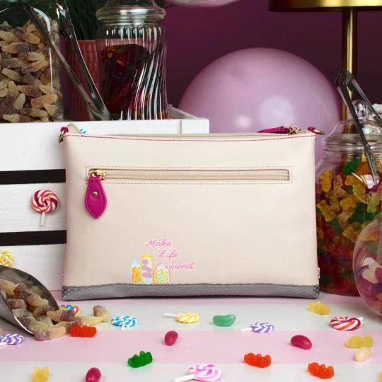 Let us introduce you to your new bestie: the Old Sweet Shop Pouch Bag! Is it a versatile bag which can be easily turned into a pouch, cosmetics, shoulder or crossbody bag by simply attaching or detaching the strap it comes with - or the Old Sweet Shop Wide Shoulder Strap. It can fit in all you need daily or on a day or night out, and it comes with a zip closing to keep your belongings safe. Made of vegan leather, it sports a delightful artwork with a multitude of colourful printed and embossed confectionery-inspired details that will make heads turn and people wonder where you got such a cool bag. Will you share your tips and have them say ‘’yum’s the word’’?