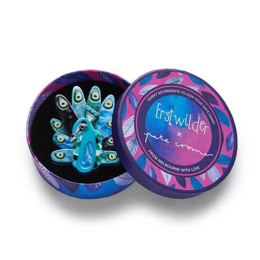 Please be aware that resin is akin to ceramic and glass and therefore may be damaged if dropped or knocked. Due to the use of high quality silver-plating in our brooch clasps, tarnishing and oxidisation can occur, producing black and gold discolouration. As with all silver products, you can simply restore it using a silver cloth. Keep your Erstwilder companion neatly tucked away in this box when not being worn, avoid contact with perfumes, lotions, water and excessive sunlight and you’ll have a trusted friend for years to come.