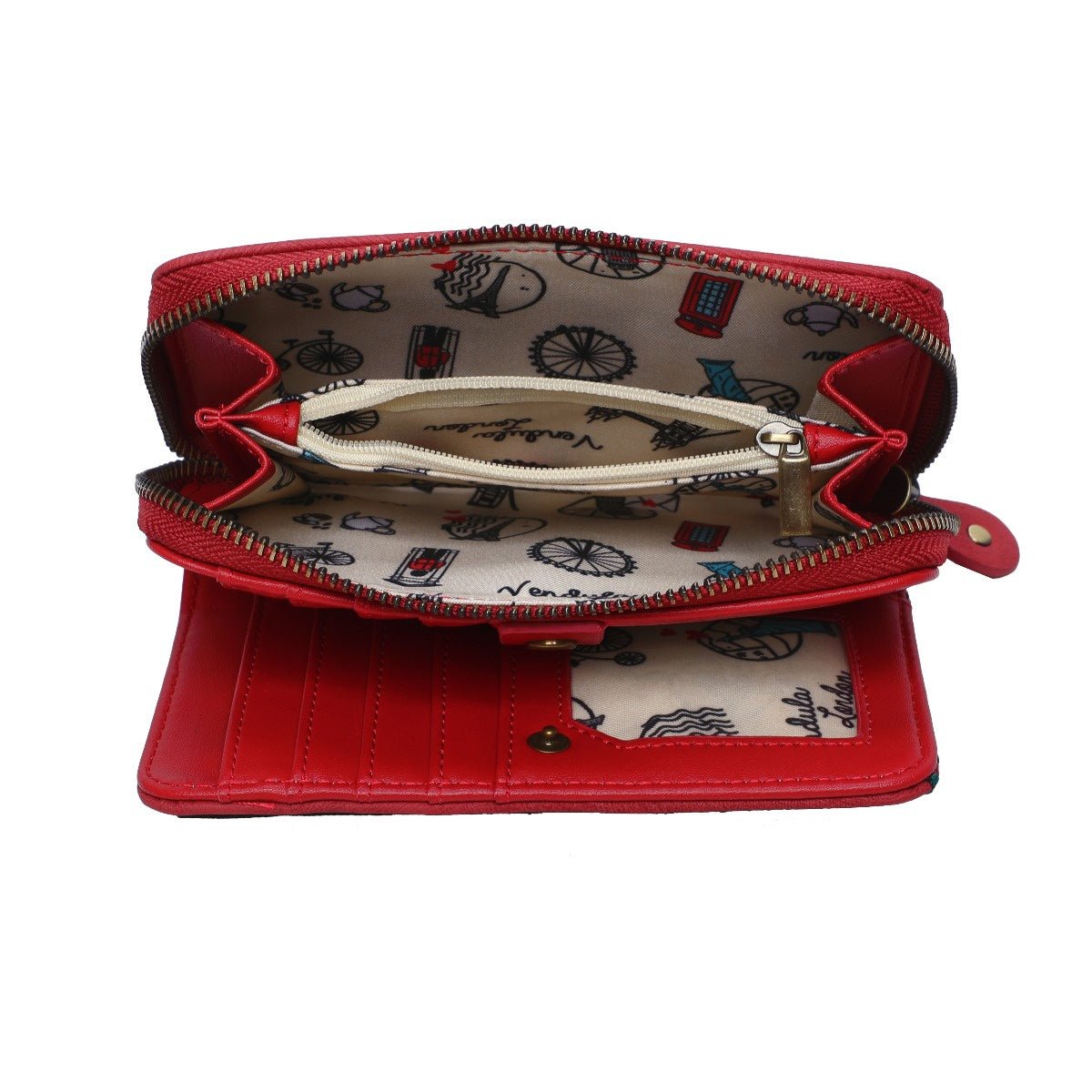 Clocks… clocks everywhere! The Tick Tock Clock Shop Medium Ziparound Wallet goes hand in hand with the Tick Tock Clock Shop handbags. It contains six card slots, a zipped pocket for coins, and slip pockets for notes and receipts. It looks gorgeous in red, with printed and embossed details all over. Imagine the look on your friends' faces when you take this new Vendula wallet out of your bag. We bet they'll want to borrow it or get their own... send them our way, we can't wait to show them the rest of the Tick Tock Clock Shop range!