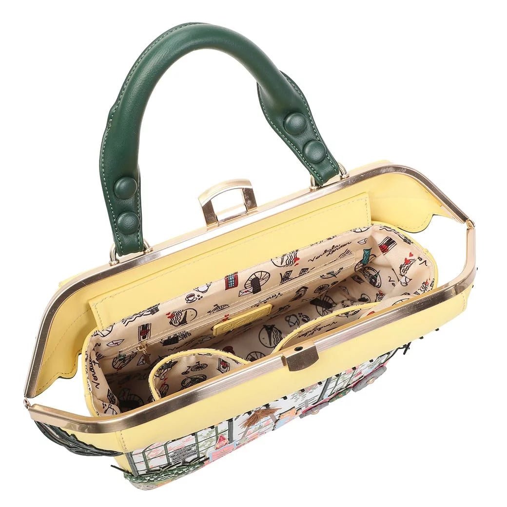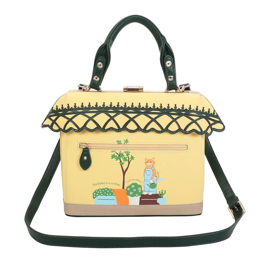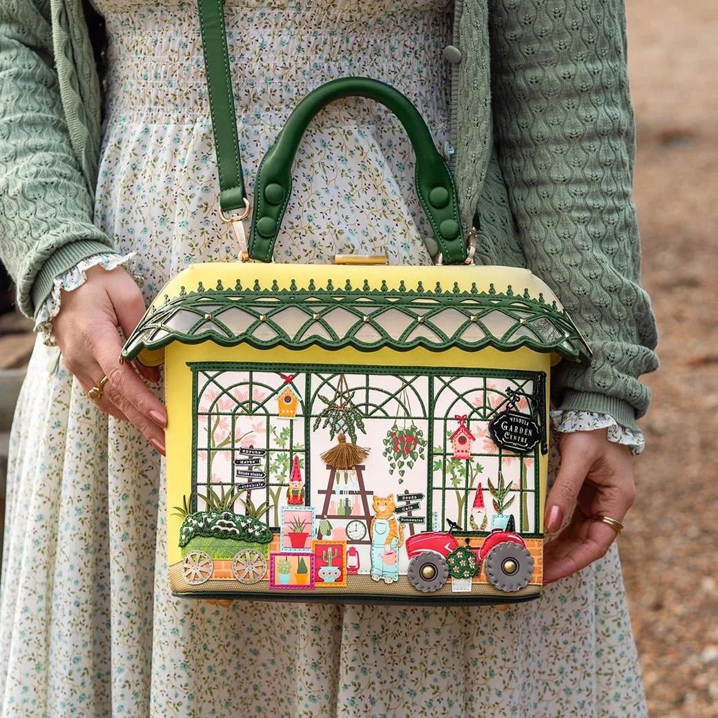 The Vendula Garden Centre Grab Bag is roomy in order to fit in all of your essentials, and it comes with a detachable handle and strap, so you can either use it as a handbag, shoulder bag or crossbody. It looks amazing with bright colours, as well as printed and embossed details such as a dungarees-clad cat, a tractor, pots, tools and an awning made of vinyl, giving it a glass roof impression. This vegan leather bag will give you a blooming look and we bet you will have a big smile on your face every time you step out of the house.