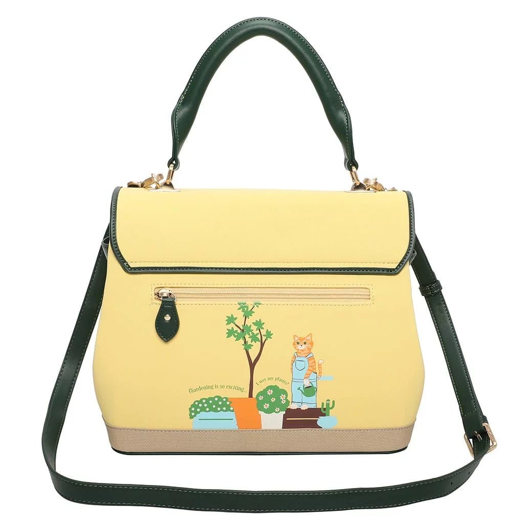 A garden is a friend you can visit any time, and the Vendula Garden Centre Grace Bag is a reminder that it needs to be well looked after. It comes with a handle and a detachable strap, which is also adjustable, so you can carry it over the shoulder or crossbody, and it is spacious to fit in all of your essentials. It looks as summer bright as can be in yellow with a garden centre-themed artwork: gnomes, birdhouses, plants and flowers adorn the front and back of this vegan leather bag and make it the bag to have this season. It will add a colourful touch to any outfits and brighten up your day, wherever the wind takes you!