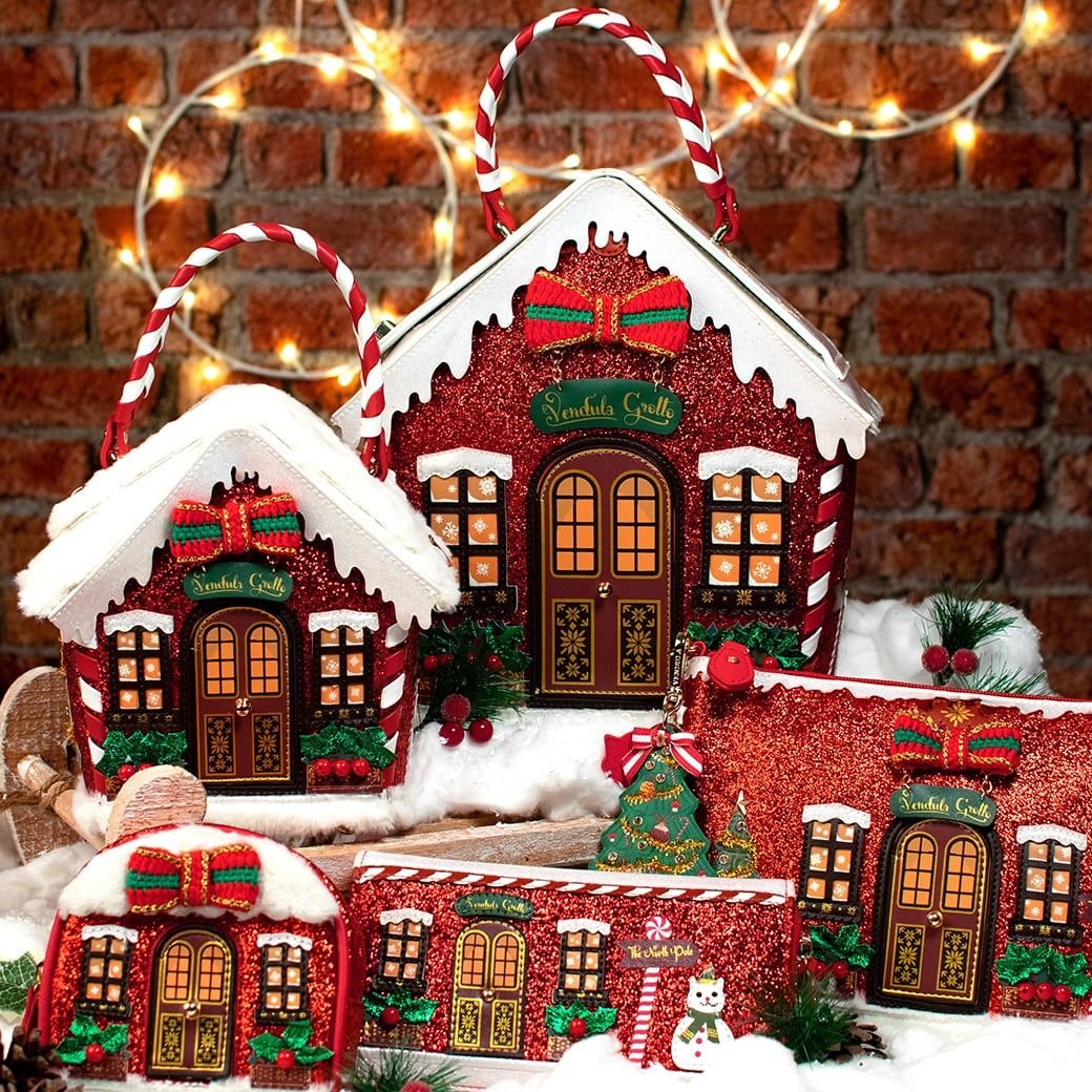Welcome to Vendula’s Grotto, where Santa Claws has been a busy kitty preparing for this festive season! Get into the party spirit with beautiful sparkling details such as the red glitter base on our best-selling house shaped bags and feel all cosy with our white faux fur trim roof of the Grotto.
