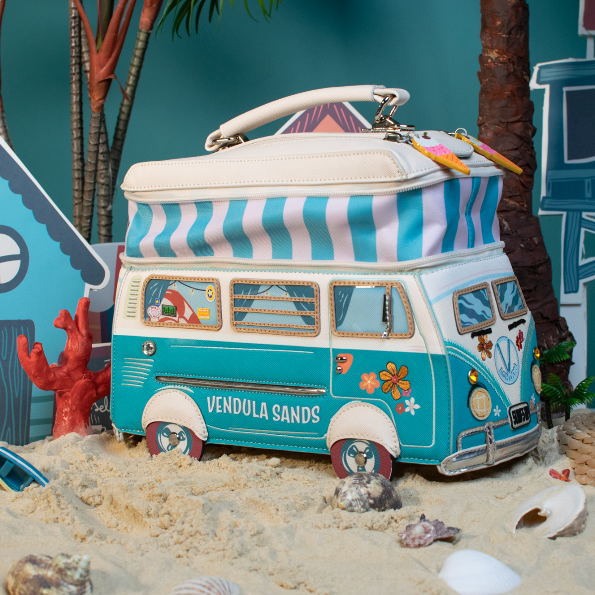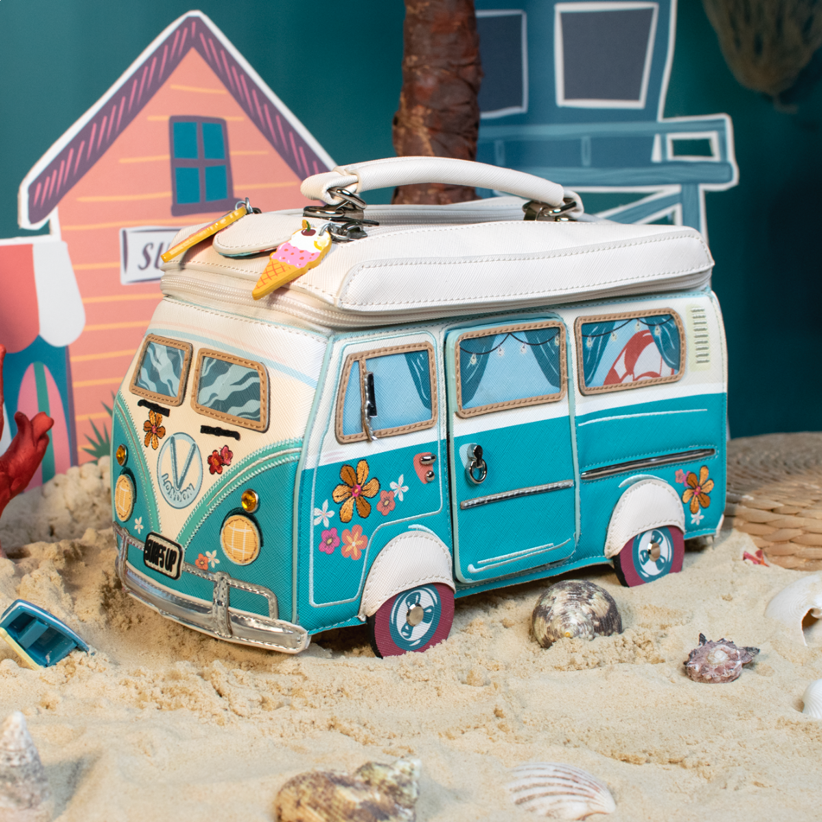 Available in two colours, the Vendula Sands Camper Van - Aqua is as cool as its coral counterpart. This vegan leather bag is ultra-secure with a double zip closure to keep your belongings safe. It’s suitable for everyday use or as a “dress to impress” accessory for summer parties. With its retro camper van shape and an array of printed and 3D details—including an exclusive beach-themed lining—this bag is bound to be a hit this season.
