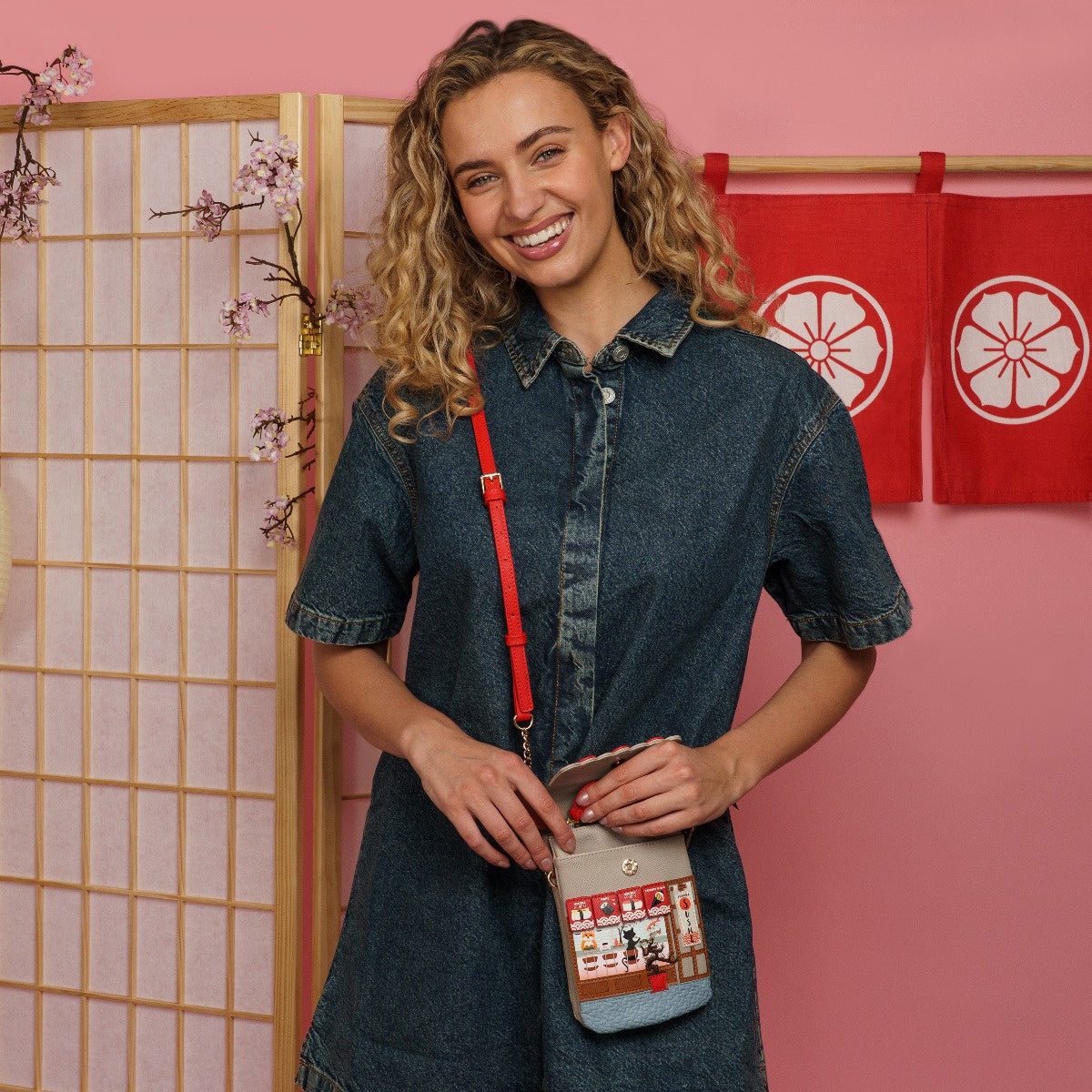 It’s impossible not to enjoy taking out the Vendula Sushi - Grey Edition Phone Pouch this spring and summer! This vegan leather accessory is highly practical, with a front pocket for your phone, two zipped pockets for other essentials, and a back zipped pocket for cash and cards. The detachable and adjustable strap ensures it can be carried as you prefer. This bag will add a hint of East-Asian flair to your wardrobe with its delightful sushi restaurant shopfront design and year-round suitability.