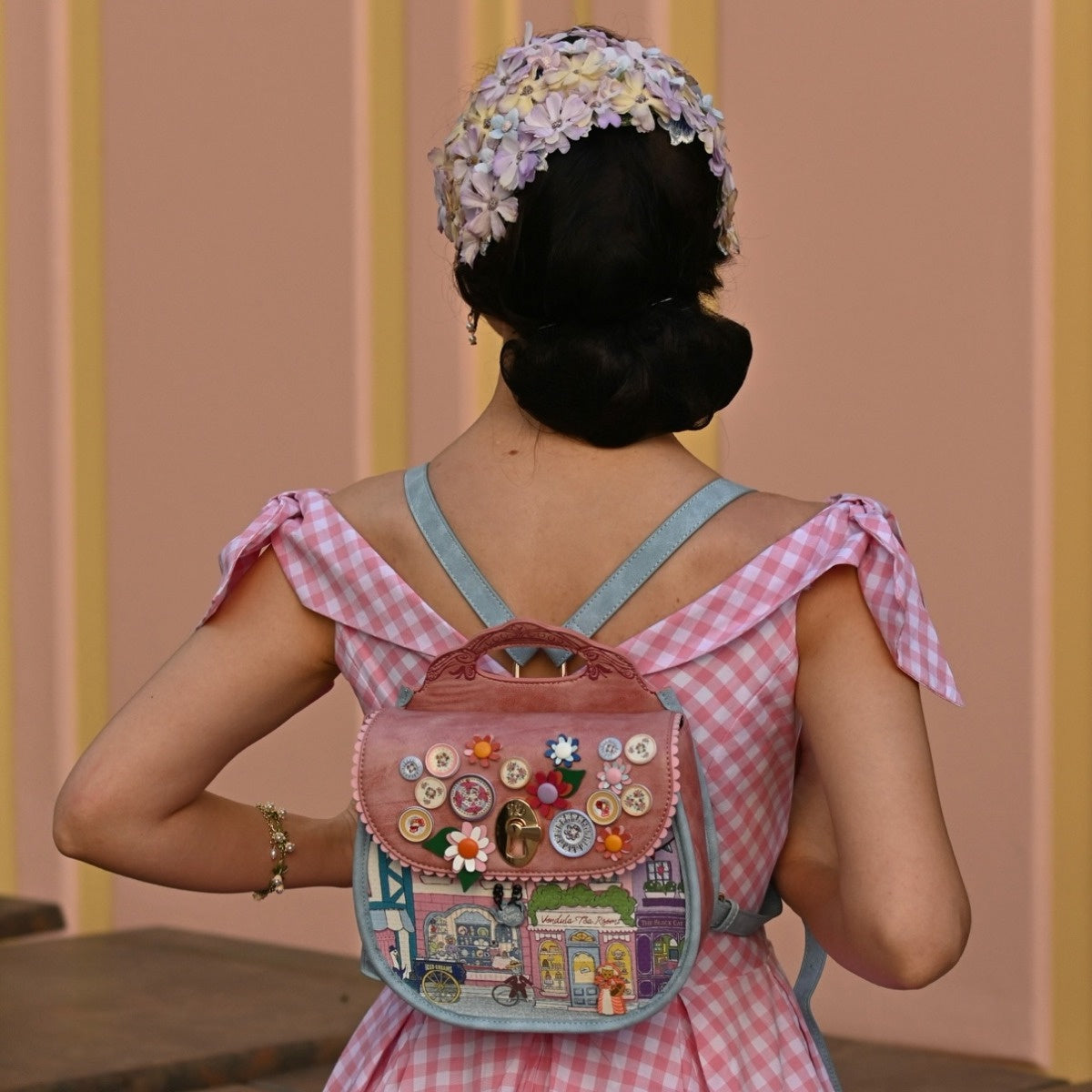 The Vendula Heritage - Victorian Tea Rooms Amelia Backpack is a little treasure, and Vendulettes of all ages will want to get their hands on it. It can fit all your essentials, and the clasp closure ensures everything stays safe. Made from vegan leather, this bag features lively Victorian street-themed artwork and 3D details that you’ll admire all season