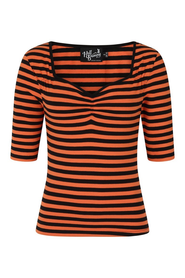 The not-so-basic basic tee your wardrobe needs! Stretchy, striped jersey top available in green, orange and white.